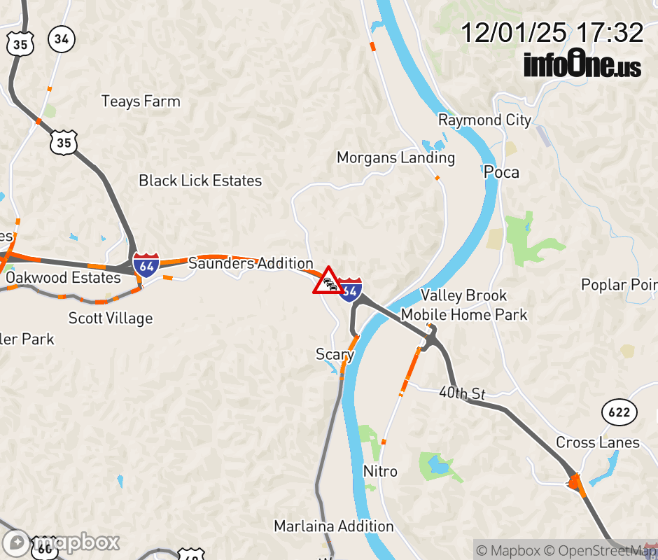 Canceled 12/1/25 6:10 PM Location: I-64 at MM 43.0, WV Congestion.