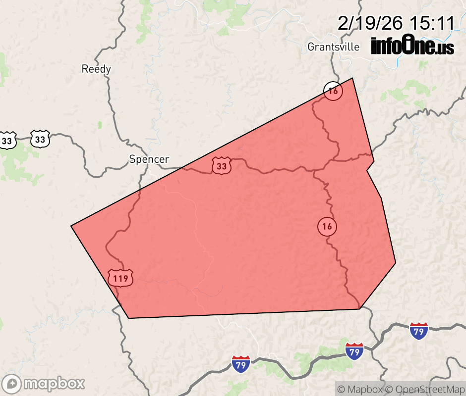 Canceled 2/19/26 3:26 PM Severe Thunderstorm Warning issued February 19 at 3:10PM EST until February 19 at 3:30PM EST by NWS Charleston WV At 310 PM EST, a severe thunderstorm was located 8 miles southwest of Arnoldsburg, or 8 miles southeast of Spencer, moving east at 45 mph. HAZARD...Quarter size hail. SOURCE...Radar indicated. IMPACT...Damage to vehicles is expected. Locations impacted include... Arnoldsburg, Millstone, Orma, Looneyville, Tariff, Nicut, Mount Zion, Chloe, and Gandeeville. ![]() |