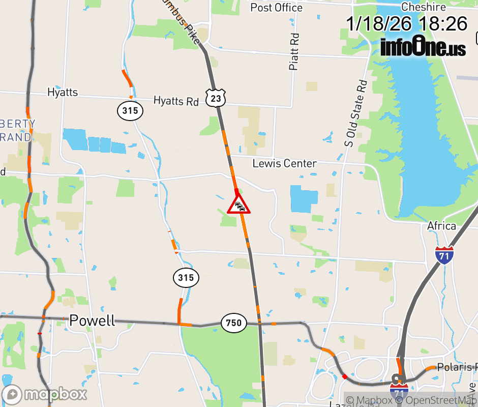 Canceled 1/18/26 8:14 PM Location: US-23 North N, OH Traffic hazard.