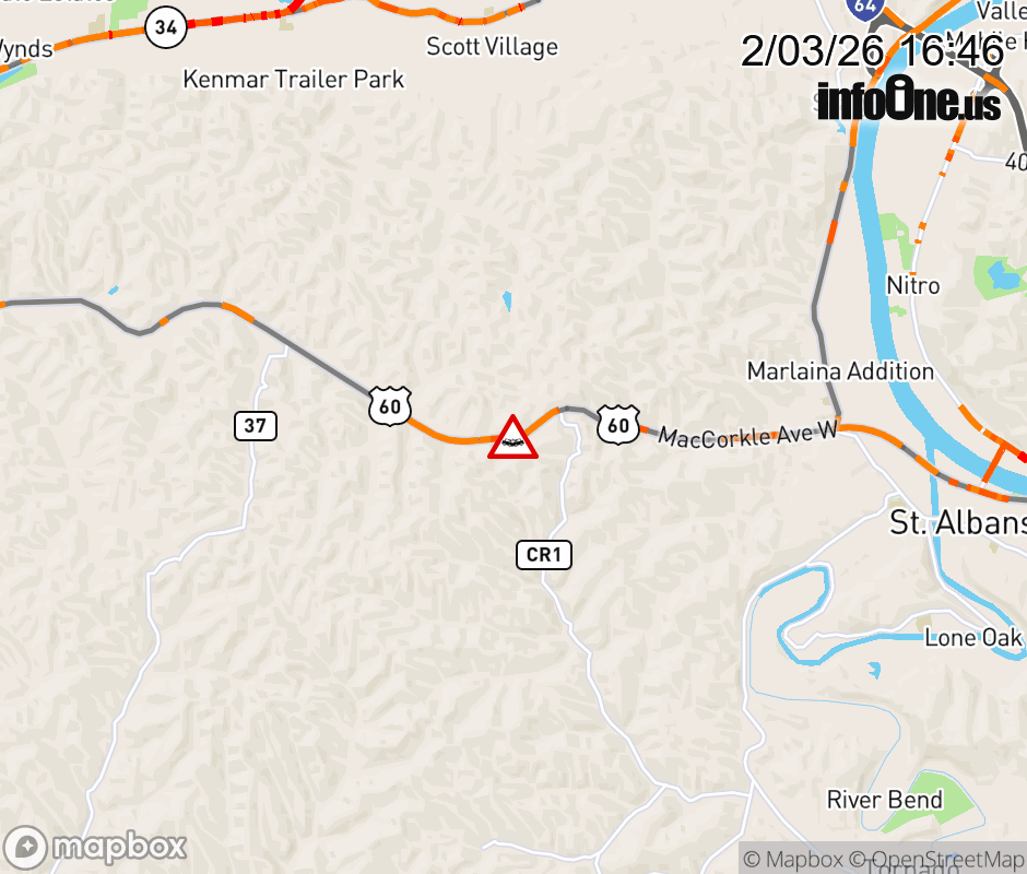 Canceled 2/3/26 7:06 PM Location: US-60 at MM 8.5, WV Accident.