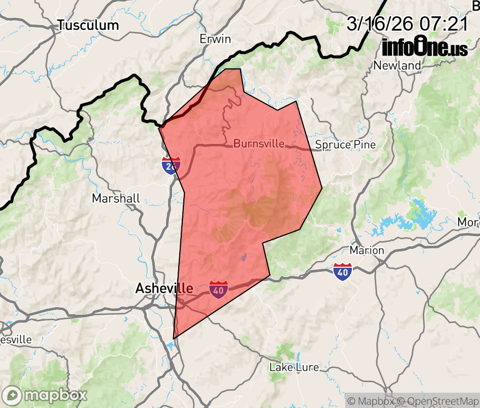 Canceled 3/16/26 7:45 AM Severe Thunderstorm Warning issued March 16 at 7:20AM EDT until March 16 at 7:45AM EDT by NWS Greenville-Spartanburg SC At 719 AM EDT, severe thunderstorms were located along a line extending from 13 miles northeast of Marshall to 10 miles southwest of Burnsville to 5 miles southeast of Downtown Asheville, moving northeast at 95 mph. HAZARD...60 mph wind gusts. SOURCE...Radar indicated. IMPACT...Expect damage to trees and power lines. Locations impacted include... Burnsville, Black Mountain, Swannanoa, Mount Mitchell State Park, B.R. Parkway-Nc Arboretum To East Asheville, B.R. Parkway-East Asheville To Craggy Gardens, B.R. Parkway-Craggy To Little Switzerland, Warren Wilson College, Montreat, and Ramseytown. ![]() |