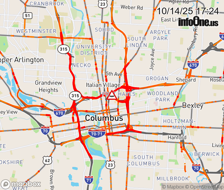 The right lane is blocked on I-670 East at SR-3/Cleveland Ave, due to a crash. Updated: Tue 10/14/25 5:24 PM EDT ![]() Updated: Tue 10/14/25 5:24 PM EDT |