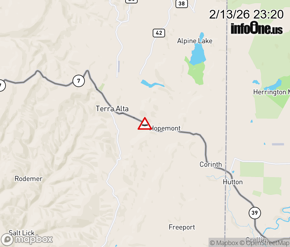 Canceled 2/14/26 12:16 AM Location: WV-7 at MM 24.0, WV Accident.