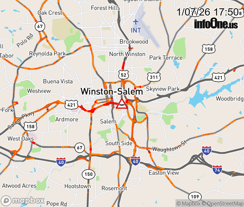 The left lane is closed at Exit 232C (US-52 S). ![]() |