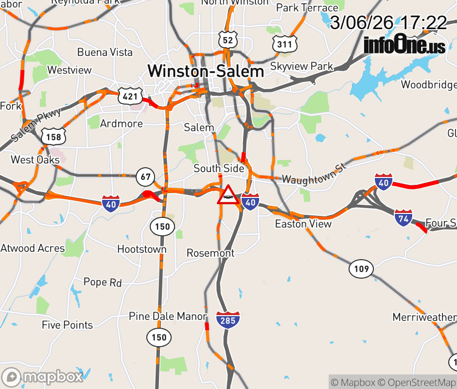 The right lane is closed at exit 193A (US 52). ![]() |