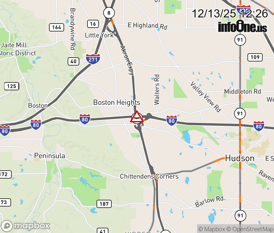 Expect lane closures on I-80 East (Ohio Turnpike) at SR-8, due to a crash. ![]() |