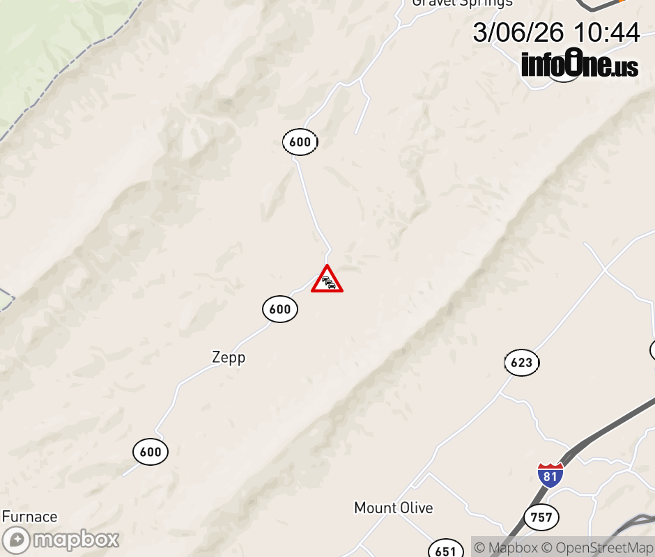 On Rt. 759 in the County of Shenandoah, in the vicinity of Cedar Creek Rd; Rt. 621N/S (Shenandoah County), motorists can expect potential delays due to standing water. All north lanes are closed. All south lanes are closed. Updated: Fri 3/6/26 10:44 AM EST ![]() Updated: Fri 3/6/26 10:44 AM EST |