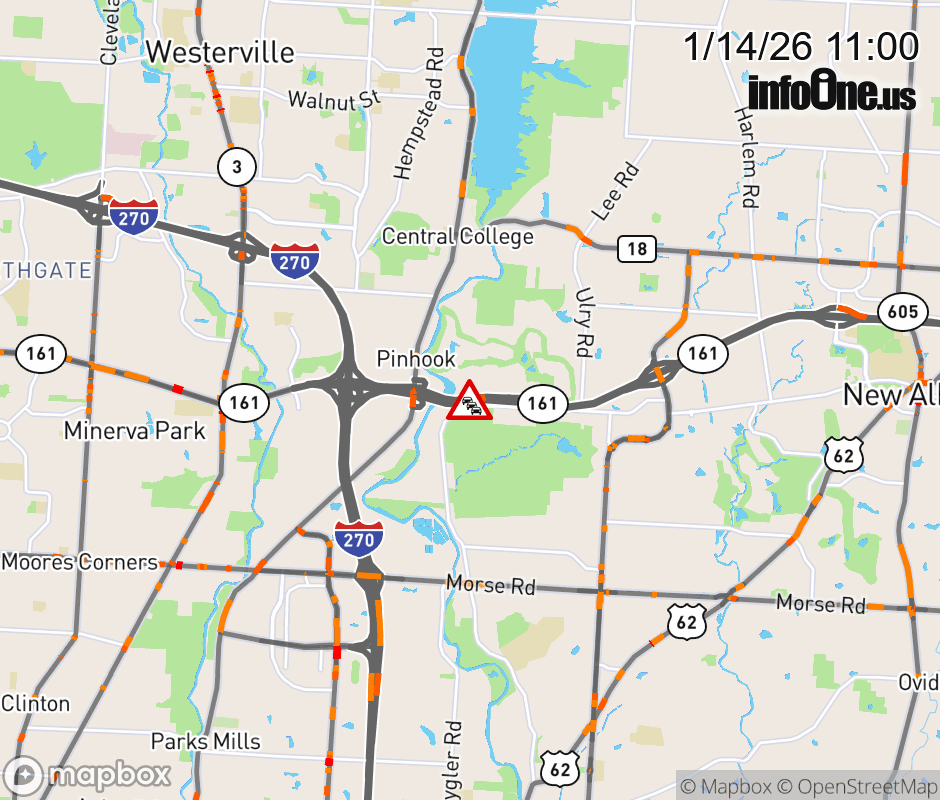 The 2 left lanes are blocked on SR-161 West at I-270, due to repairs/maintenance. ![]() |