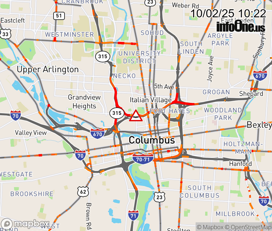 The right lane is blocked on I-670 West at Neil Ave/Goodale St, due to a crash. Updated: Thu 10/2/25 10:22 AM EDT ![]() |