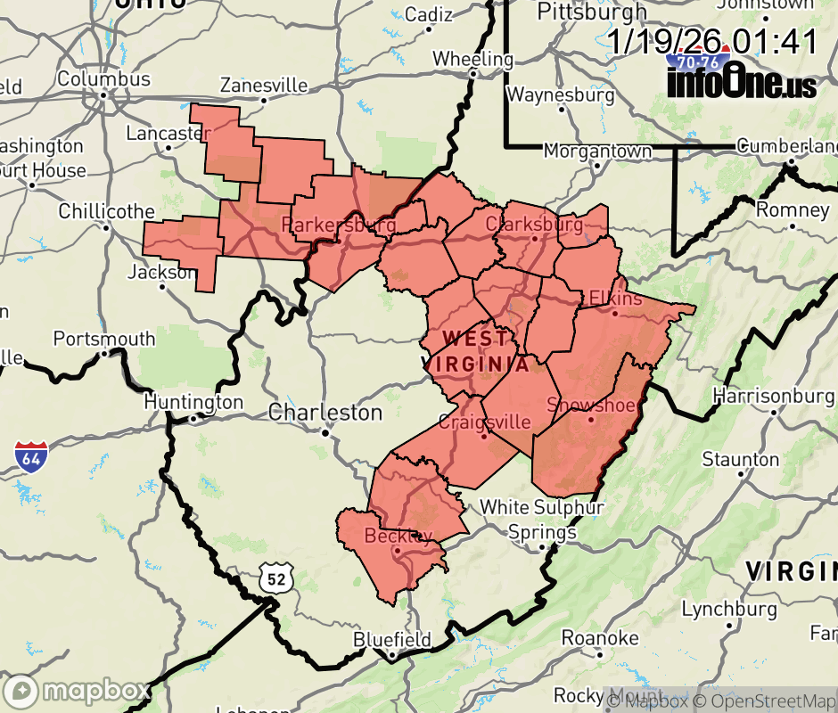 Canceled 1/19/26 10:45 AM Cold Weather Advisory issued January 19 at 1:40AM EST until January 20 at 12:00PM EST by NWS Charleston WV * WHAT... Very cold wind chills as low as 12 below expected. * WHERE... Portions of southeast Ohio and central, northeast, northern, and southeast West Virginia. * WHEN... From 9 PM this evening to noon EST Tuesday. * IMPACTS... The cold wind chills as low as 10 below zero could result in hypothermia if precautions are not taken. ![]() |