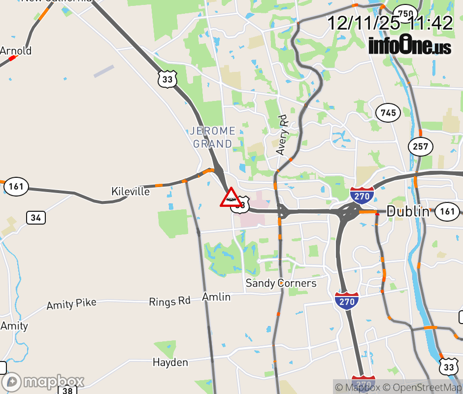 The left shoulder is blocked on US-33/SR-161 West beyond Avery - Muirfield Dr, due to a crash. ![]() |