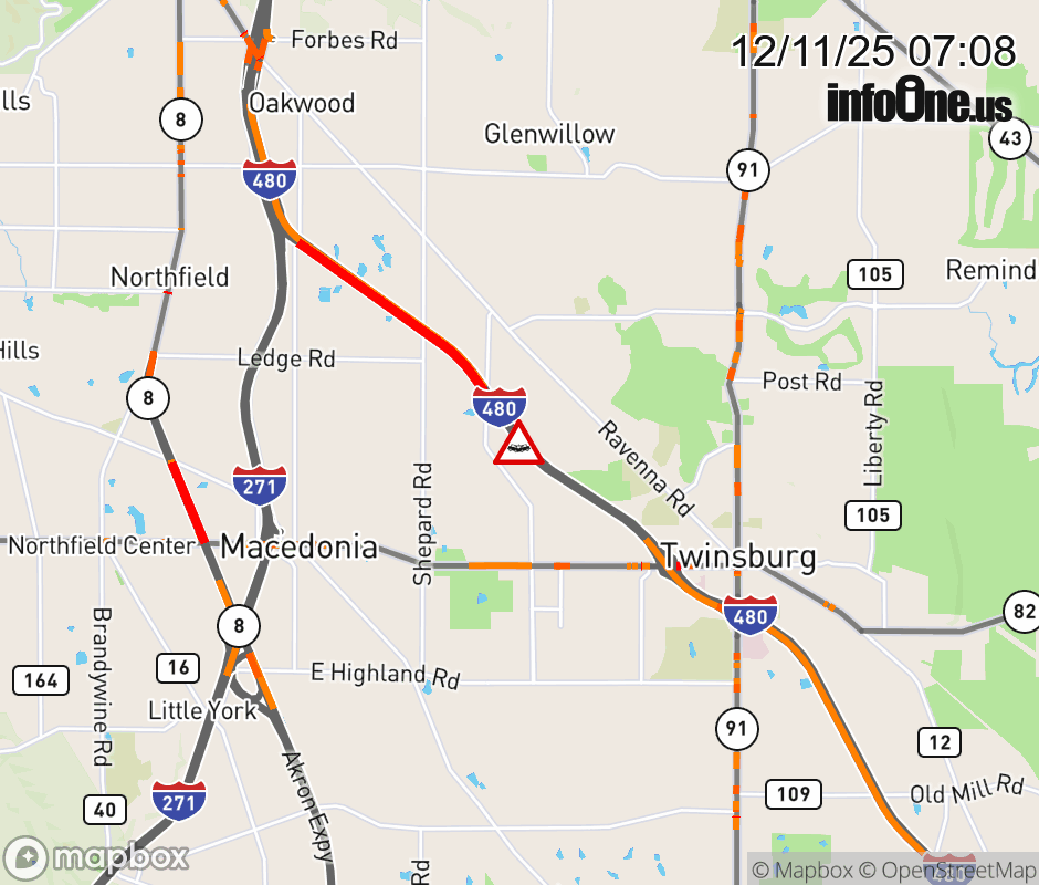 Expect lane closures on I-480/SR-14 East beyond I-271, due to a crash. ![]() |