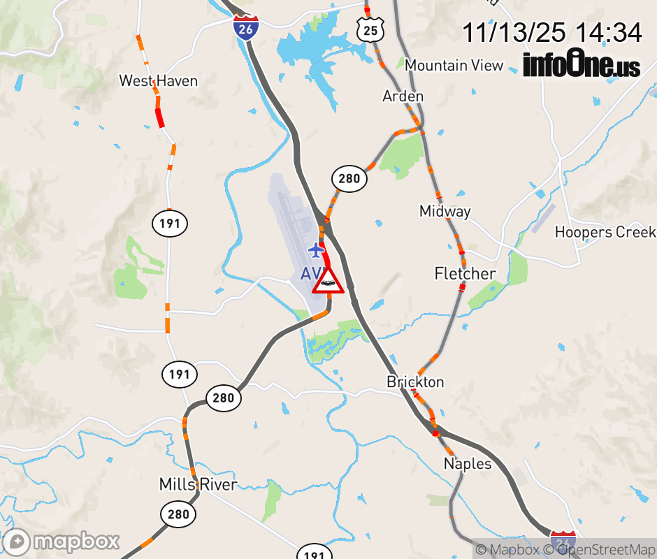 The left lane is closed near Fanning Bridge Road. Updated: Thu 11/13/25 2:34 PM EST ![]() Updated: Thu 11/13/25 2:34 PM EST |