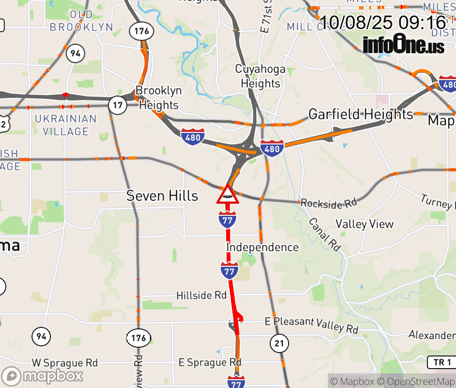 The left shoulder is blocked on I-77 North beyond Rockside Rd, due to a crash.