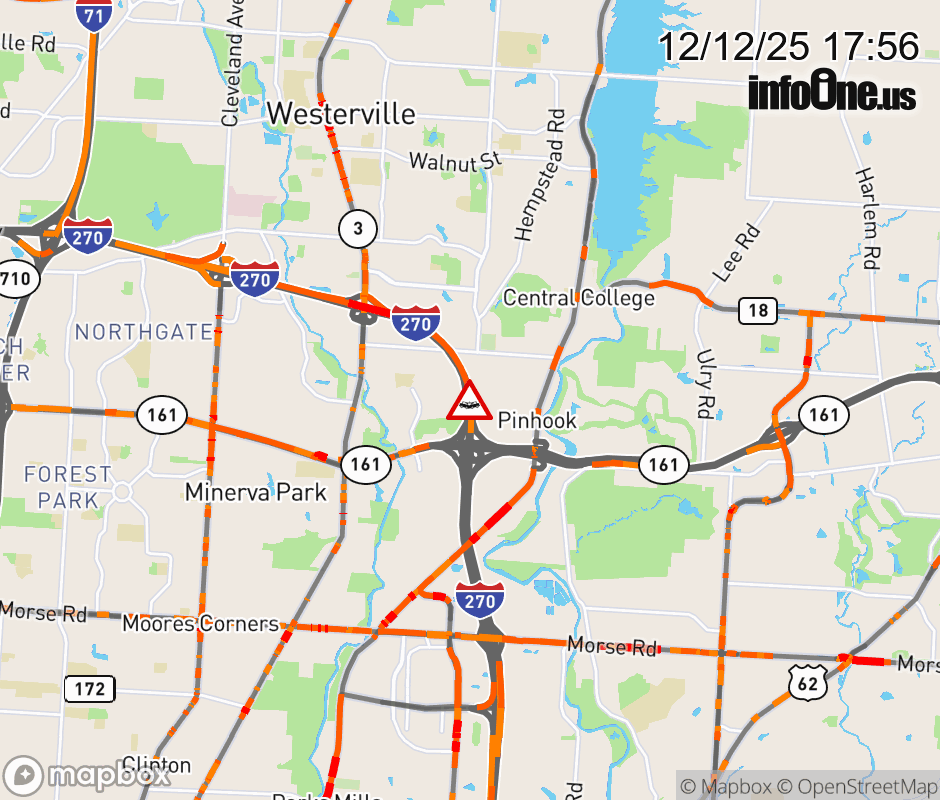 The left shoulder is blocked on I-270 North beyond SR-161, due to a crash. ![]() |