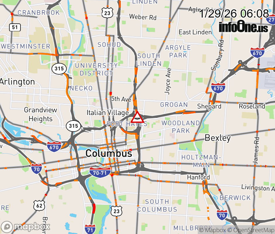 The right lane is blocked on I-71 North beyond I-670 West, due to a crash. ![]() |