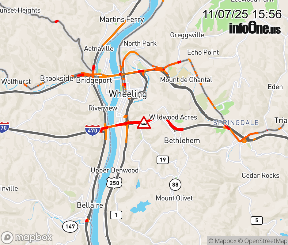 Vehicle Crash on I-470W at Mile Marker 1.0. The westbound right lane is closed. Updated: Fri 11/7/25 3:56 PM EST ![]() Updated: Fri 11/7/25 3:56 PM EST |