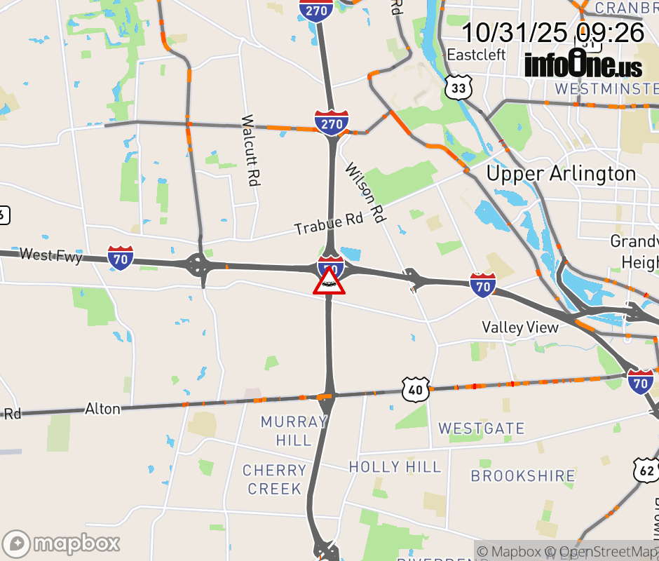 Ramp I-270 South to I-70 East (Westside) CLOSED because of a crash. ![]() |