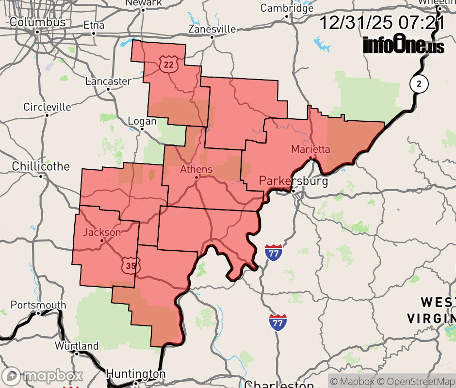 Canceled 12/31/25 11:00 AM Special Weather Statement issued December 31 at 7:20AM EST by NWS Charleston WV Patchy freezing drizzle moving through the area could lead to slick spots on the roadways that may impact the morning commute. Slow down and use caution while traveling and visit ohgo.com for the latest road information. ![]() |