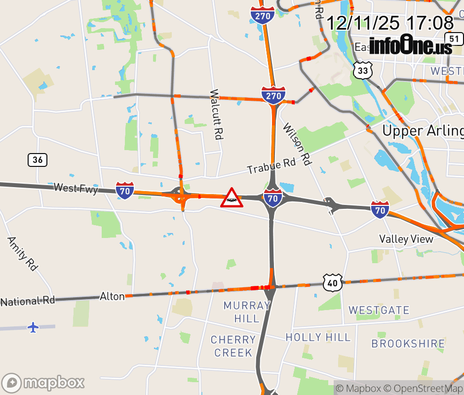 The left shoulder is blocked on I-70 East beyond Hilliard - Rome Rd, due to a crash. Updated: Thu 12/11/25 5:08 PM EST ![]() Updated: Thu 12/11/25 5:08 PM EST |