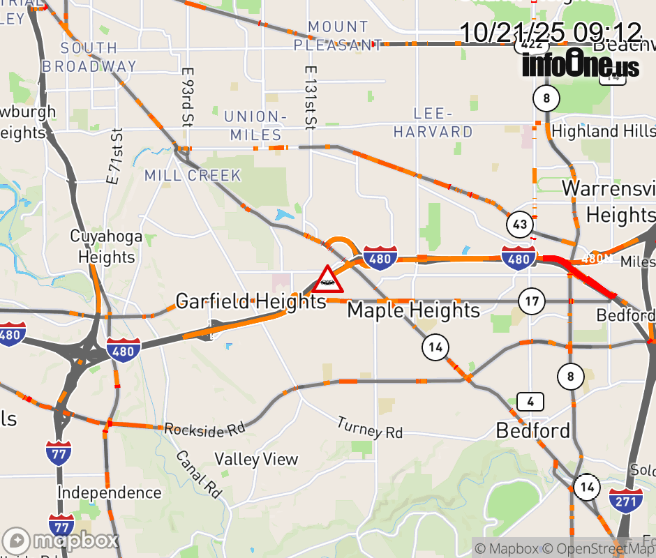 The left lane is blocked on I-480 East beyond SR-17/Granger Rd, due to a crash. ![]() |