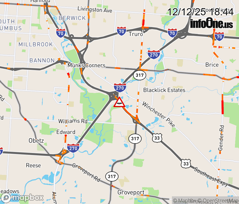 The right shoulder is blocked on US-33 West at I-270 North, due to a crash. Updated: Fri 12/12/25 6:44 PM EST ![]() Updated: Fri 12/12/25 6:44 PM EST |