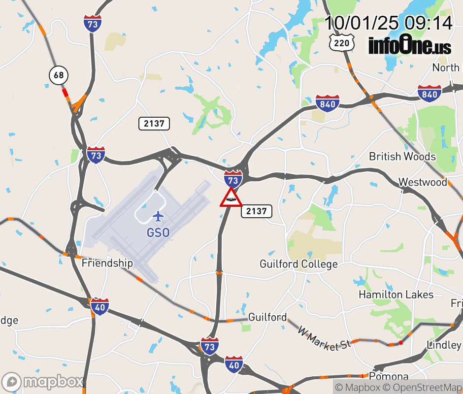 The right 2 lanes is closed near Exit 104 ( W Friendly Ave).