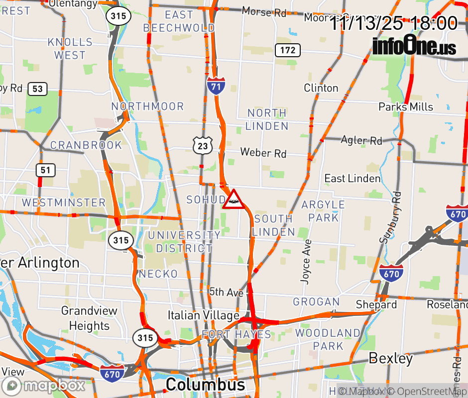 The left lane is blocked on I-71 South beyond Hudson St, due to a crash. ![]() |