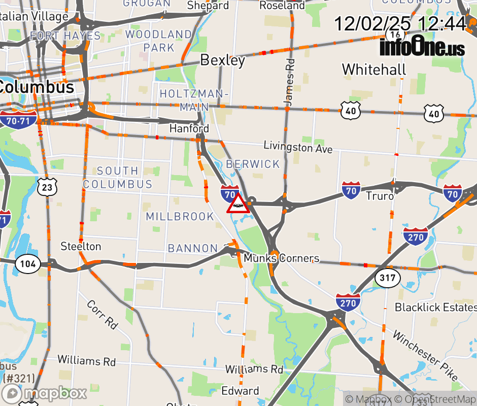 Expect lane closures on Ramp I-70 East to US-33 East at I-70 East, due to a crash. ![]() |