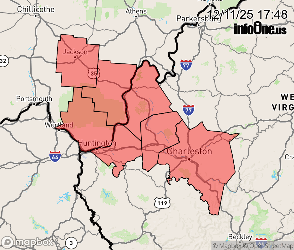 Canceled 12/12/25 3:24 AM Winter Storm Watch issued December 11 at 5:47PM EST until December 14 at 1:00PM EST by NWS Charleston WV * WHAT... For the Winter Weather Advisory, snow expected. Total snow accumulations between 1 and 4 inches. For the Winter Storm Watch, heavy snow possible. Total snow accumulations between 3 and 5 inches possible. * WHERE... Portions of southeast Ohio and southern and western West Virginia. * WHEN... For the Winter Weather Advisory, from 10 PM this evening to 1 PM EST Friday. For the Winter Storm Watch, from Saturday afternoon through Sunday afternoon. * IMPACTS... Roads, and especially bridges and overpasses, will likely become slick and hazardous. Plan on slippery road conditions. The hazardous conditions could impact the Friday morning commute. ![]() |