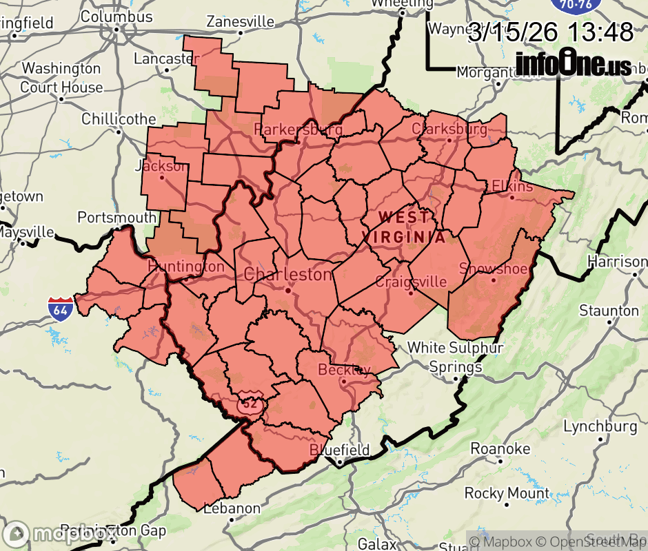 Canceled 3/15/26 10:30 PM Wind Advisory issued March 15 at 1:47PM EDT until March 16 at 11:00AM EDT by NWS Charleston WV * WHAT... South winds 15 to 25 mph with gusts up to 45 mph expected. * WHERE... Portions of northeast Kentucky, southeast Ohio, southwest Virginia, and central, northeast, northern, southeast, southern, and western West Virginia. * WHEN... From midnight tonight to 11 AM EDT Monday. * IMPACTS... Gusty winds will blow around unsecured objects. Tree limbs could be blown down and scattered power outages may result. * ADDITIONAL DETAILS... The strongest winds are expected just ahead of, coincident with, and just behind the cold front. ![]() |