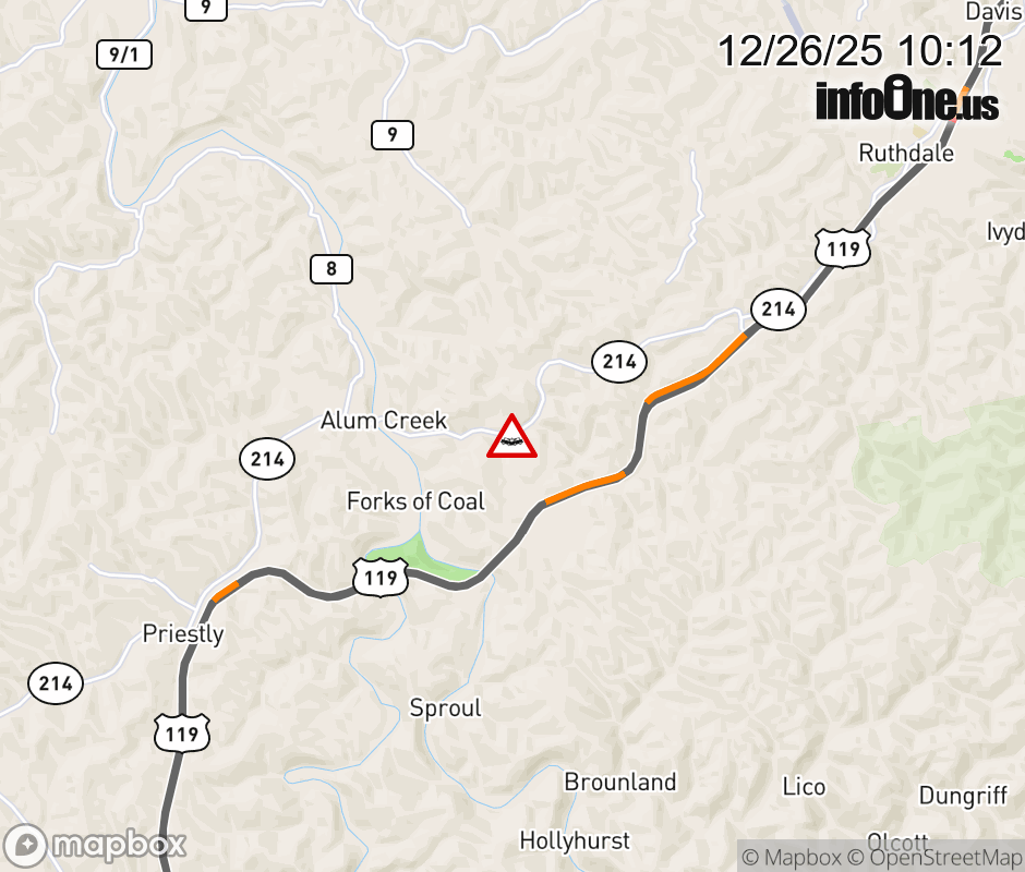 Vehicle Crash on WV-214 (Childress Rd) & Bens Branch Rd in Alum Creek. ![]() |