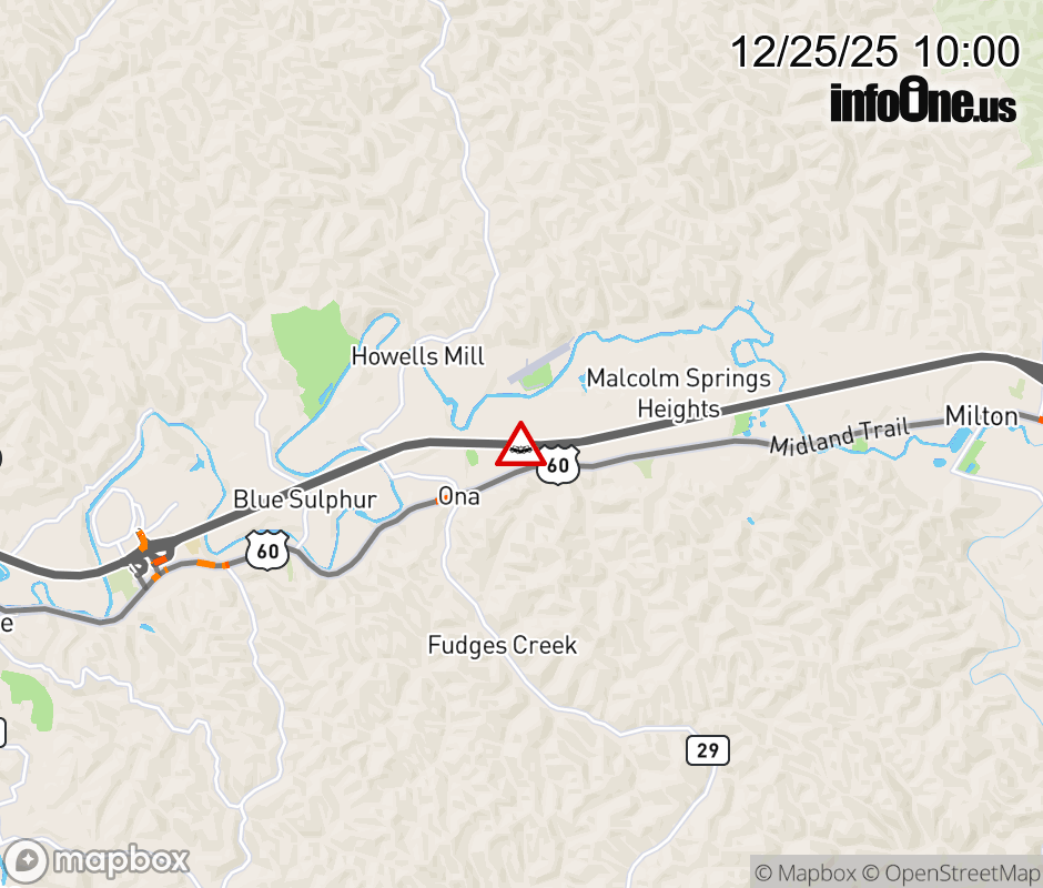 Canceled 12/25/25 11:42 AM Location: I-64 at MM 23.0, WV Accident.