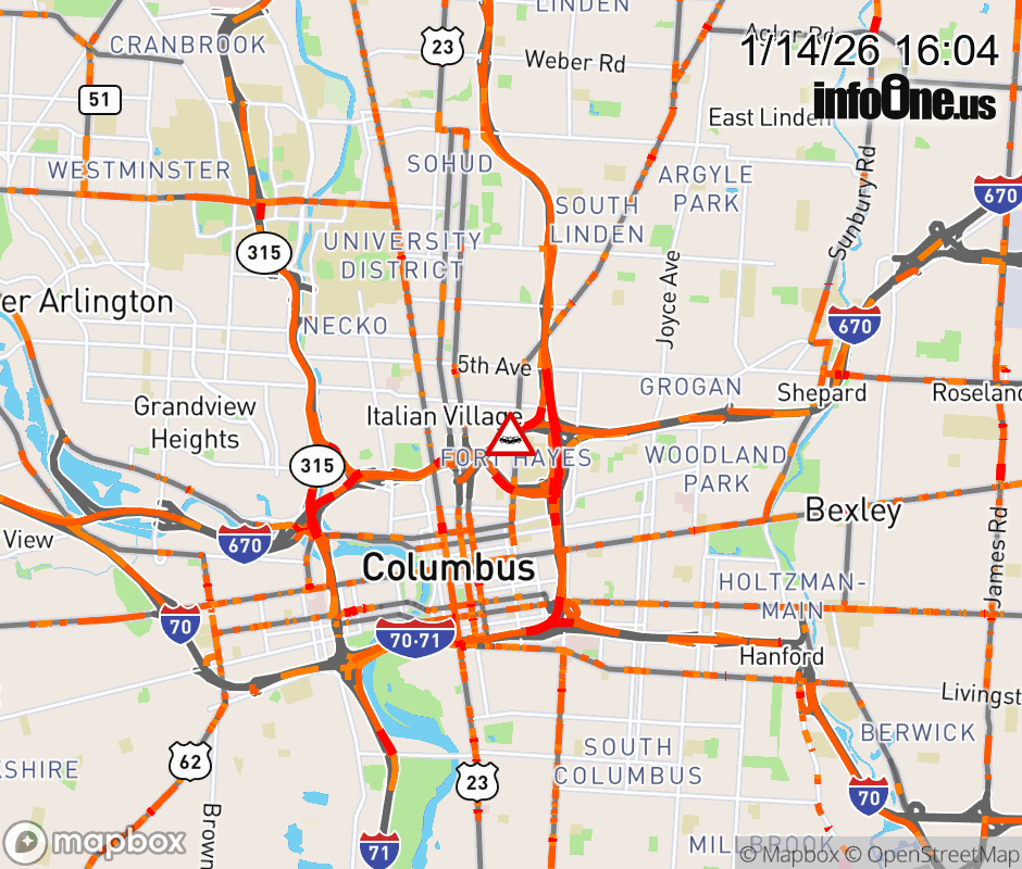The 2 left lanes are blocked on I-670 West at High St/US-23 S/Third St, due to a crash. ![]() |