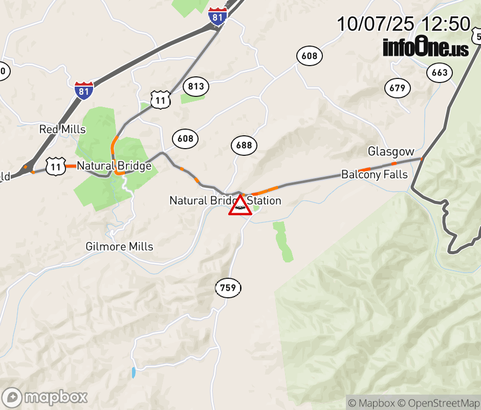 On Rt. 774 in the County of Rockbridge, in the vicinity of Highland Way Ln; Rt. 775N/S (Rockbridge County), motorists can expect delays due to a tractor trailer crash. All east lanes are closed. All west lanes are closed. ![]() |