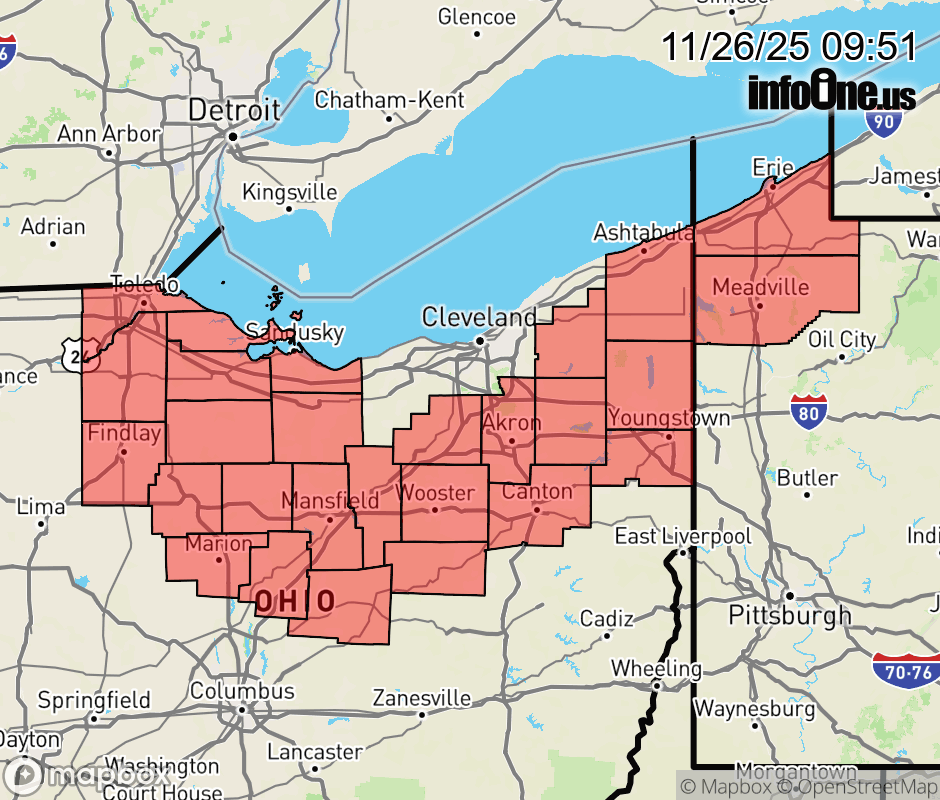 Canceled 11/26/25 4:00 PM Wind Advisory issued November 26 at 9:49AM EST until November 27 at 4:00AM EST by NWS Cleveland OH * WHAT... Southwest winds 20 to 30 mph with gusts up to 50 mph expected. * WHERE... Portions of north central, northeast, and northwest Ohio and northwest Pennsylvania. * WHEN... Until 4 AM EST Thursday. * IMPACTS... Gusty winds will blow around unsecured objects. Tree limbs could be blown down and a few power outages may result. ![]() |