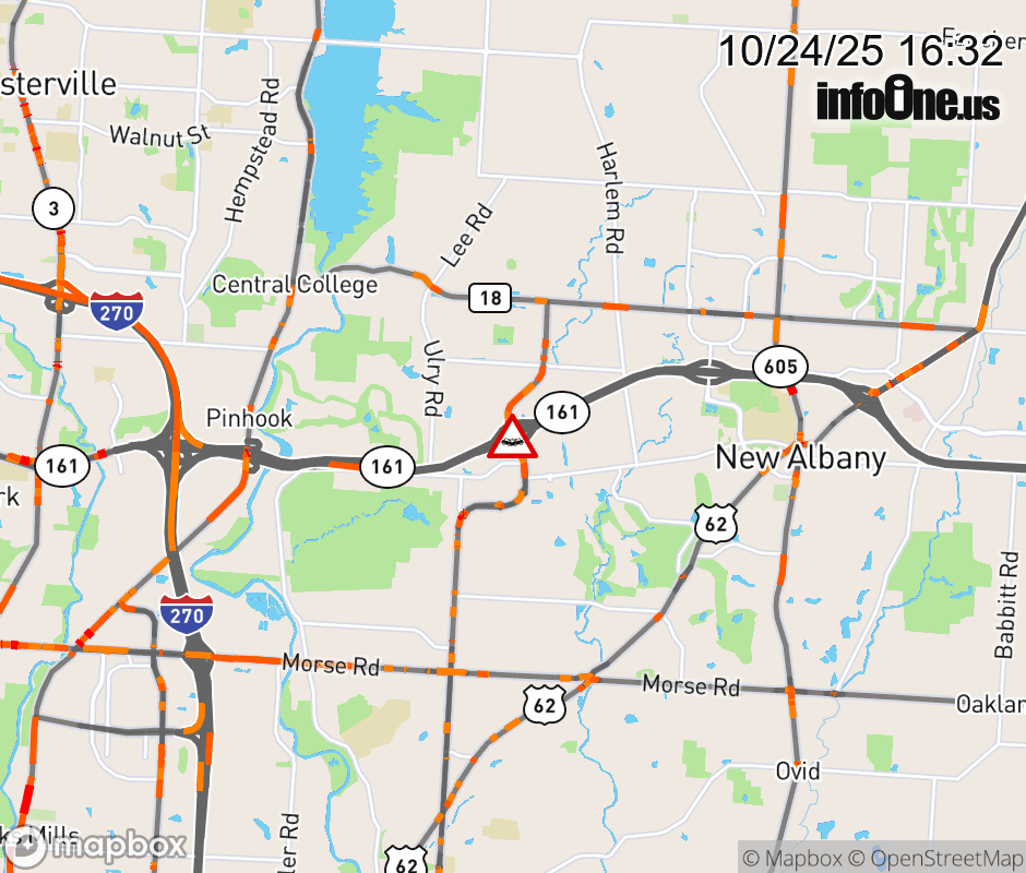 The right shoulder is blocked on SR-161 East beyond Hamilton Rd, due to a crash. Updated: Fri 10/24/25 4:32 PM EDT ![]() |