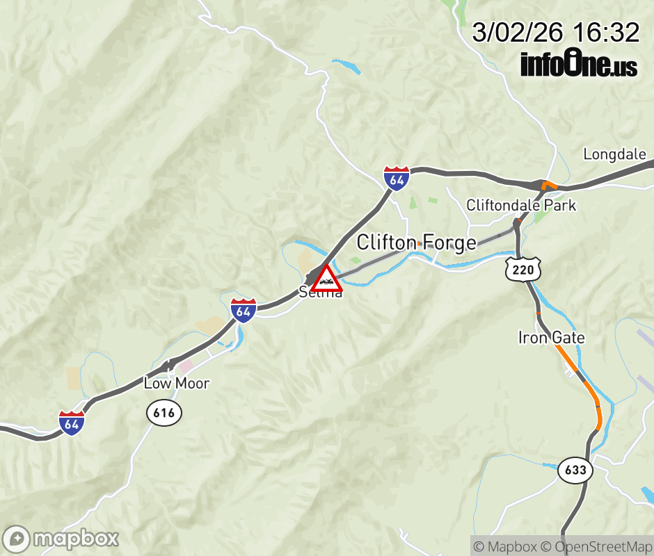 On Rt. 696 in the County of Alleghany, in the vicinity of Ridgeway St; Ridgeway St W; BUS US-220N/S, BUS US-60E/W, motorists can expect delays due to a disabled tractor trailer. All east lanes are closed. All west lanes are closed. Updated: Mon 3/2/26 4:32 PM EST ![]() Updated: Mon 3/2/26 4:32 PM EST |
