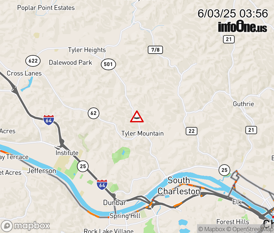 In Kanawha County there is a Vehicle Crash on WV-501 at Mile Marker 2.27. Big Tyler Road. ![]() |