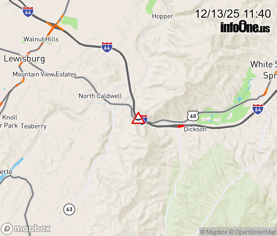 Canceled 12/13/25 1:08 PM Location: I-64 at MM 174.0, WV Accident.