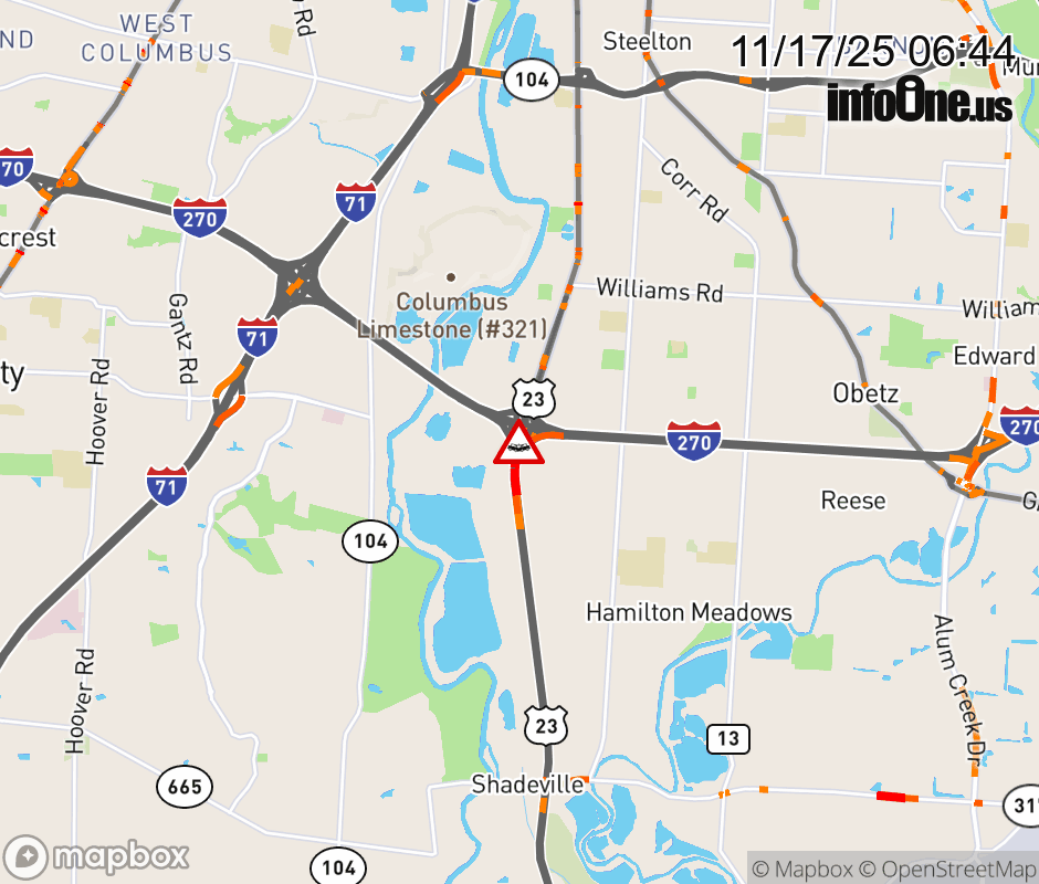 The left lane is blocked on US-23 North at I-270, due to a crash. Updated: Mon 11/17/25 6:44 AM EST ![]() |