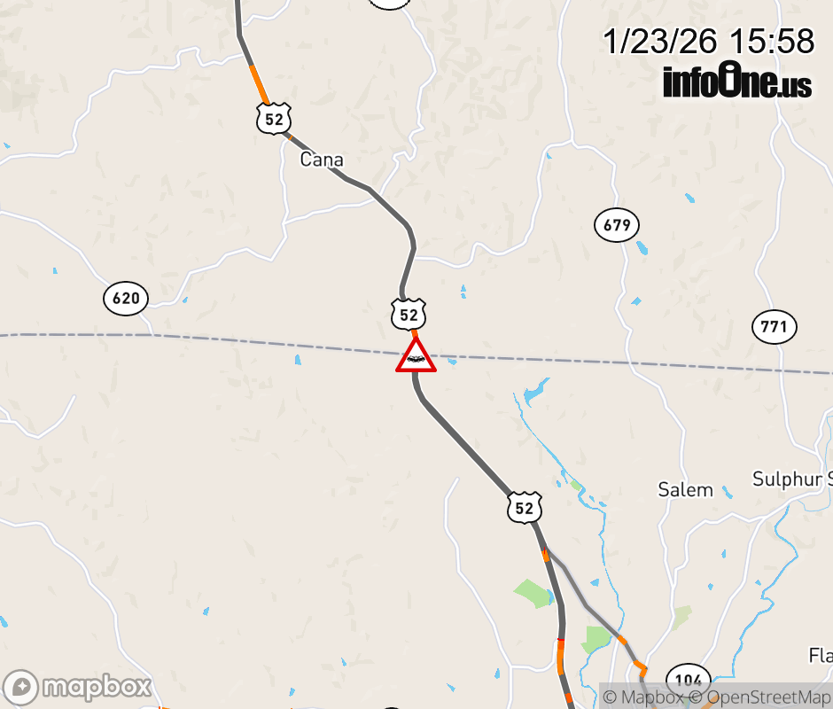 On US-52 North in the County of Wythe, in the vicinity of Lavender Rd; Rt. 796E/W (Wythe County), motorists can expect delays due to a vehicle crash. Lane closures exist. ![]() |