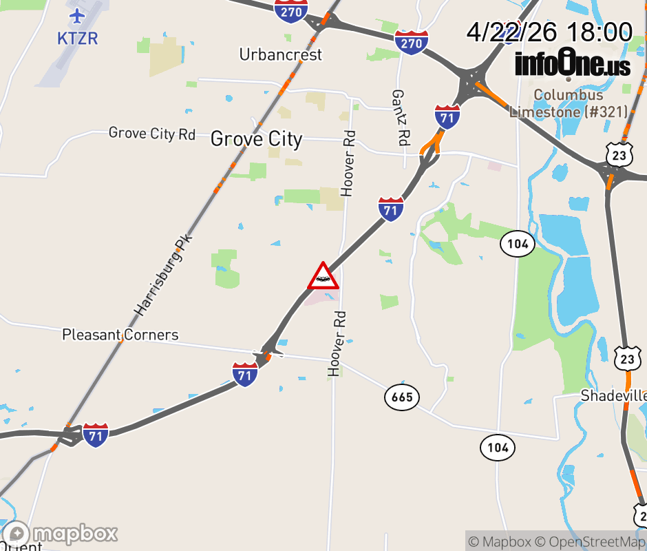 The left lane is blocked on I-71 South beyond Stringtown Rd, due to a crash. Updated: Wed 4/22/26 6:00 PM EDT ![]() Updated: Wed 4/22/26 6:00 PM EDT |