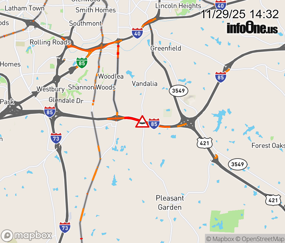 The right shoulder is closed past Exit 124 (S Elm-Eugene St). Updated: Sat 11/29/25 2:32 PM EST ![]() Updated: Sat 11/29/25 2:32 PM EST |