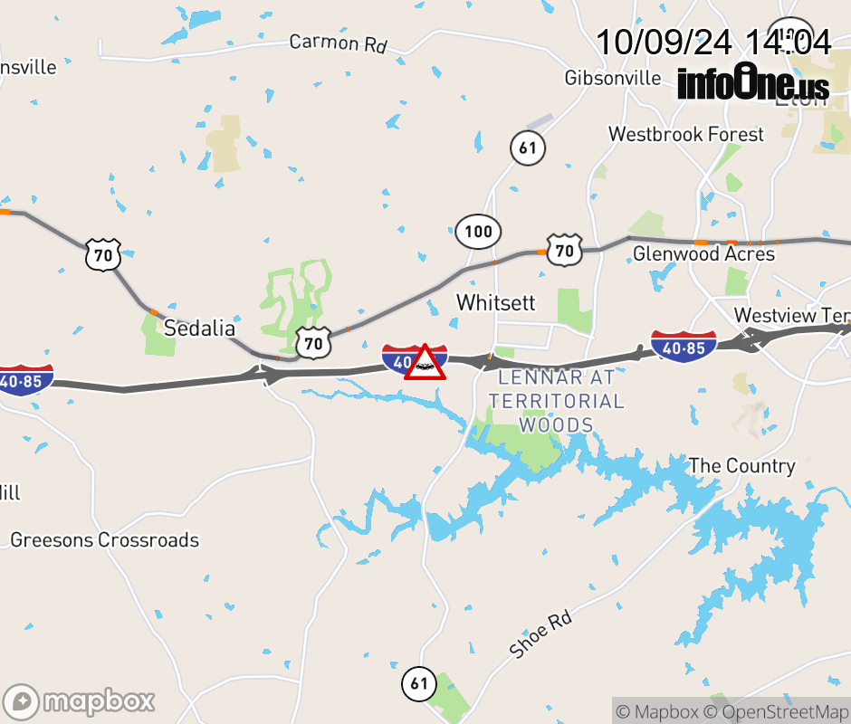 The left 2 lanes are closed before Exit 138 (NC-61). ![]() |