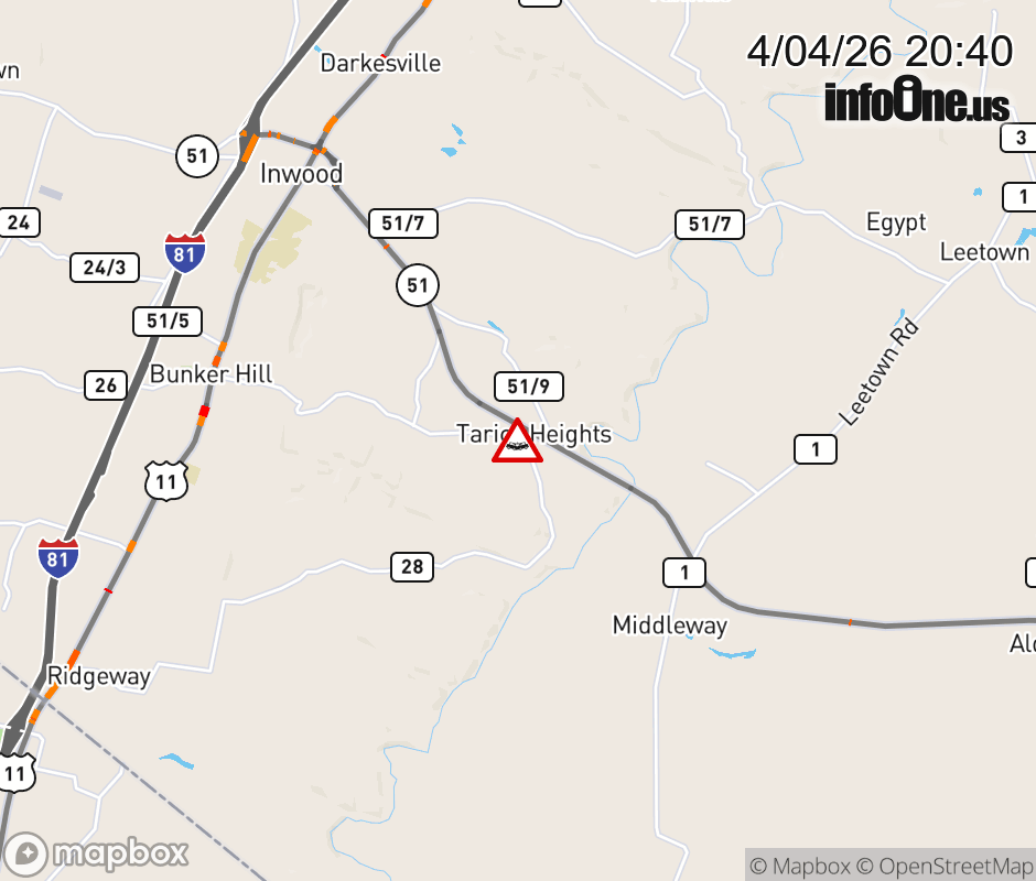 Vehicle Crash on CR-26 (Giles Mill Road) @ CR-51/9 (Three Run Road). The northbound right lane is closed. Updated: Sat 4/4/26 8:40 PM EDT ![]() Updated: Sat 4/4/26 8:40 PM EDT |