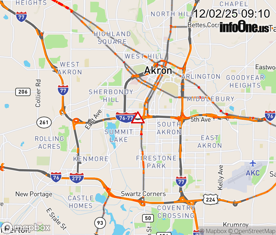 The right shoulder is blocked on I-76 West/I-77 North beyond Main St/Broadway/Downtown, due to a crash. ![]() |