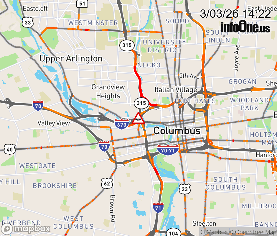Ramp I-670 East to SR-315 North CLOSED because of a crash. ![]() |