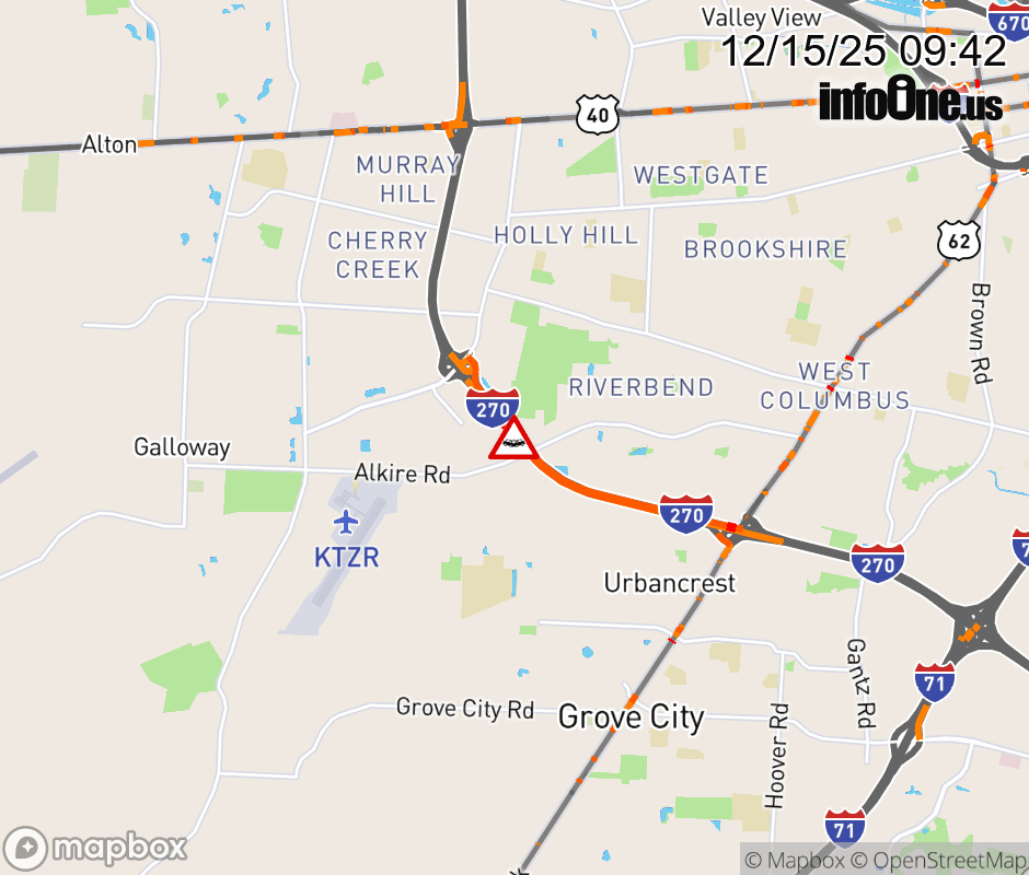 The right lane is blocked on I-270 East beyond Georgesville Rd, due to a crash. ![]() |