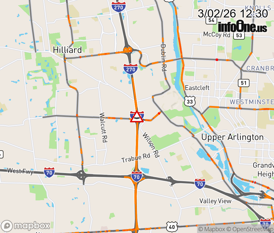 Expect lane closures on I-270 in both directions 0.3 miles beyond Roberts Rd. (MM: 10.6), due to crash. ![]() |